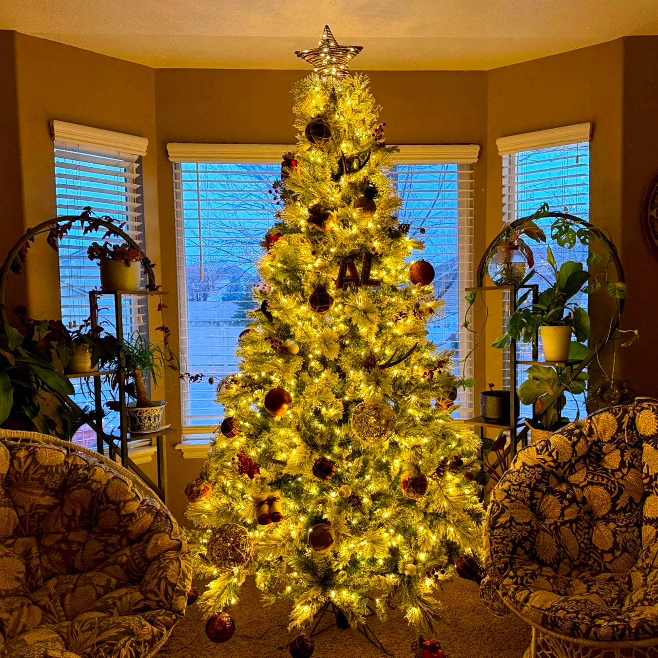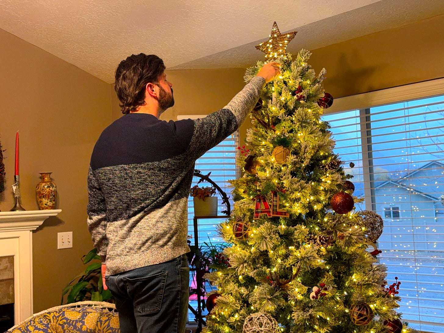 I stood there on the stepladder a moment longer than necessary, letting the fullness settle. The tree glowed in the dimming room.